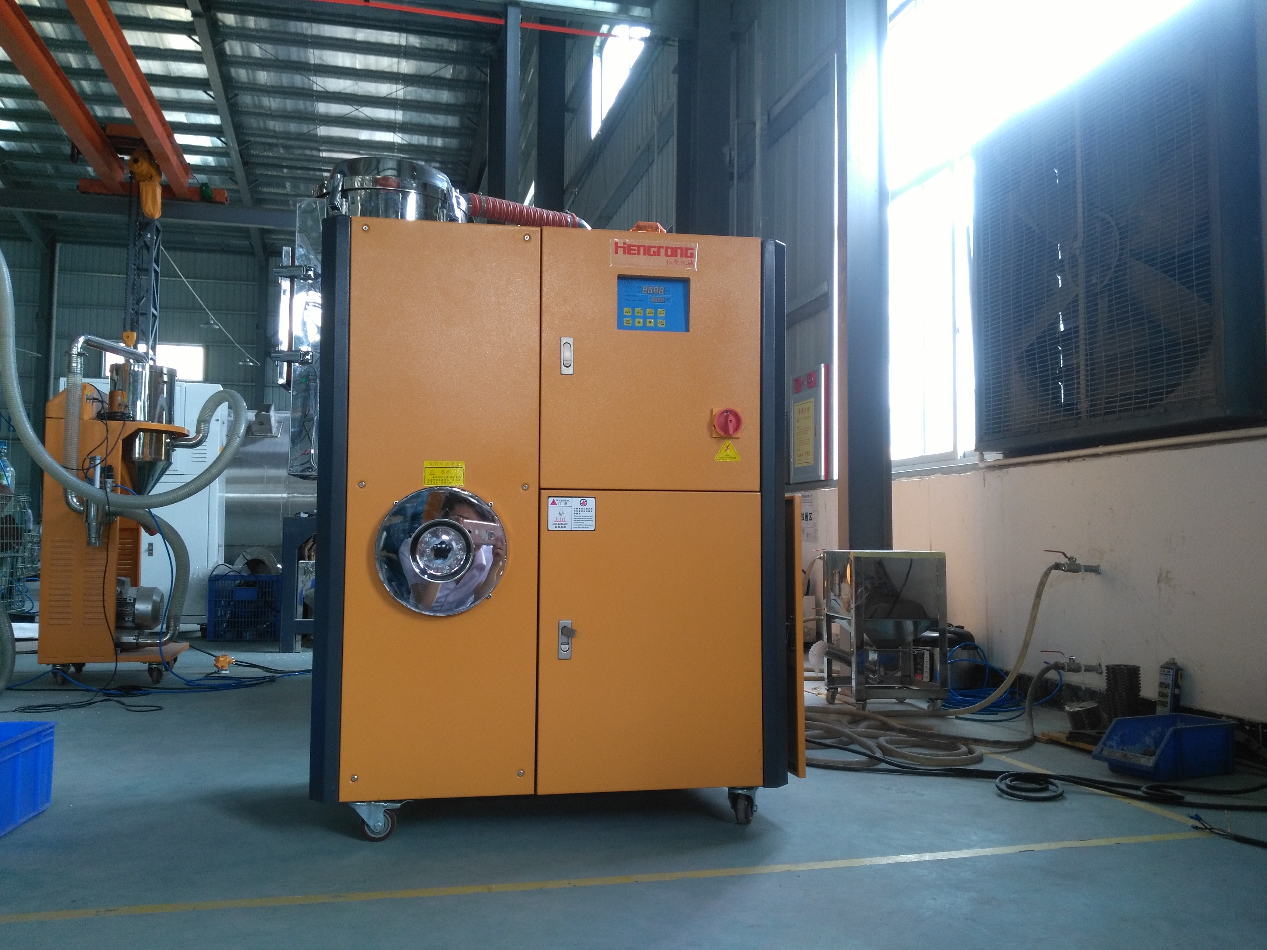 恒荣牌除湿干燥机集除湿、干燥两种功能为一体,广泛适用于各种塑胶原料、尤其是吸湿性较强的工程塑料,如PA、PC、PBT、PET等,蜂巢转轮在理想的状态下最低可达到-40度以下到露点,该乐鱼首页产品采用ND 乐鱼首页蜂巢式转轮除湿干燥机搭配下吹式全不锈钢欧化保温干燥桶组合而成。