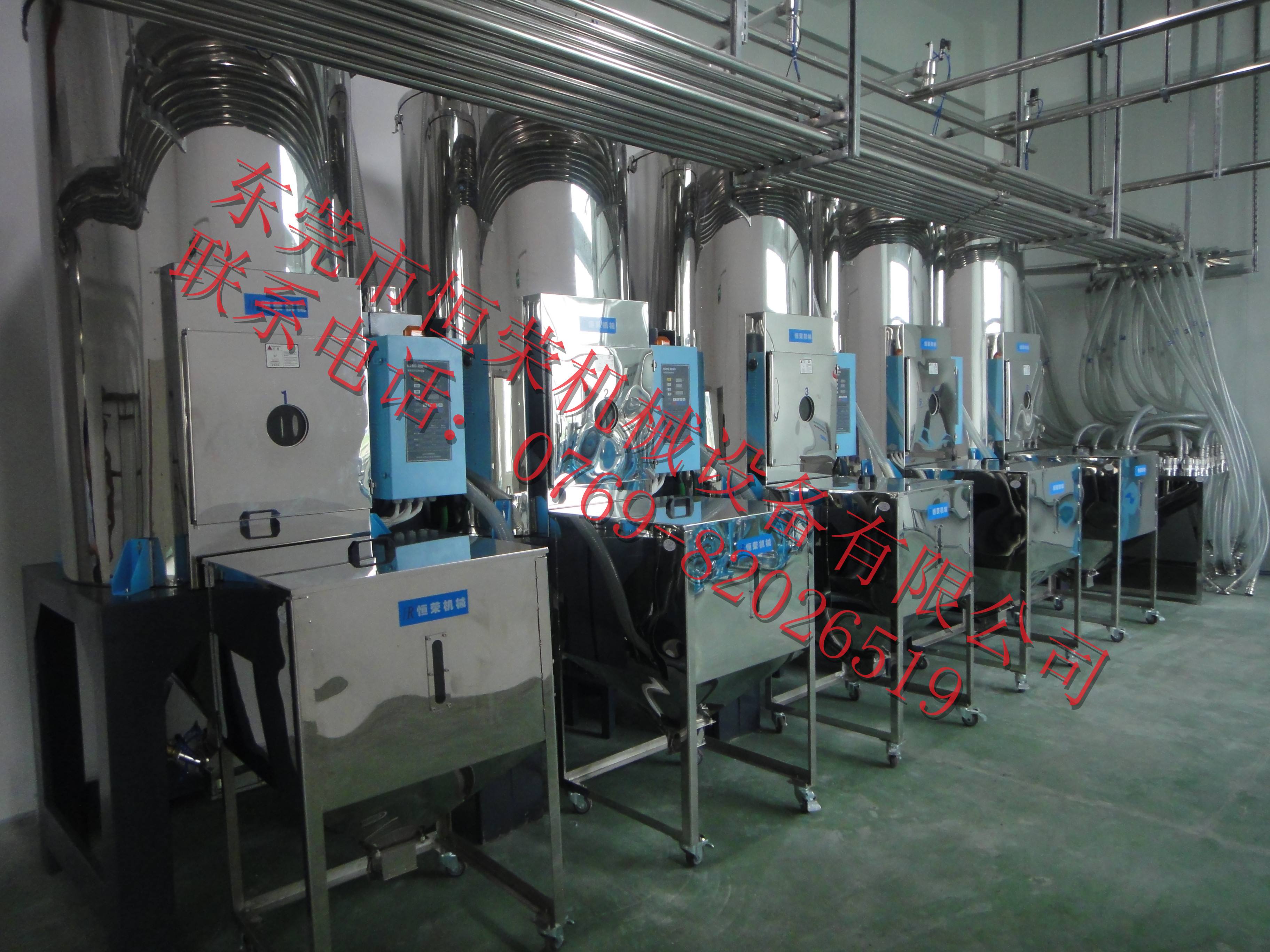 恒荣中央供料系统是根据客户现场机台的摆放情况和对现场原料的用料情况,结合特有辅机设备而设计的一种能够实现集中供料,集中控制,从而实现全厂无人化不间断成形作业的整体性解决方案。